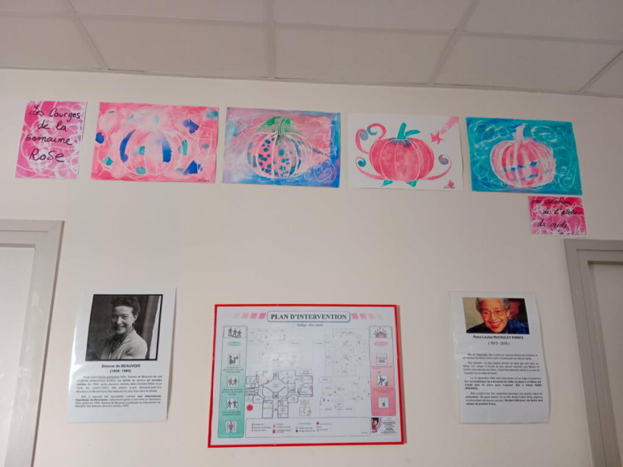 Durant tout le mois d’octobre, les élèves ont été sensibilisés à Octobre rose et au fait de soutenir la recherche contre les cancers en général, et du sein en particulier. Le hall avait été décoré à l’occasion avec des ballons, par des élèves, sous la surveillance de Mme Araujo Anne, CPE, et cette semaine des dessins ont été rajoutés, réalisés avec M. Carré Guillaume, enseignant d’arts plastiques.